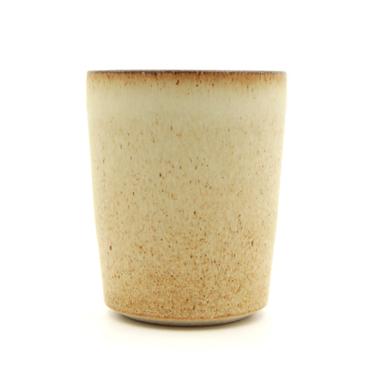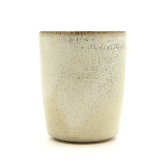 Elegant formede krus og kopper ligger behageligt i hånden. De er drejet med omhu i stentøj og har en fin kant, der gør dem rare at drikke af. Kopperne har en stor, afrundet og flad hank, som er særlig god at holde. Bunden er diamantslebet for at give en helstøbt oplevelse.