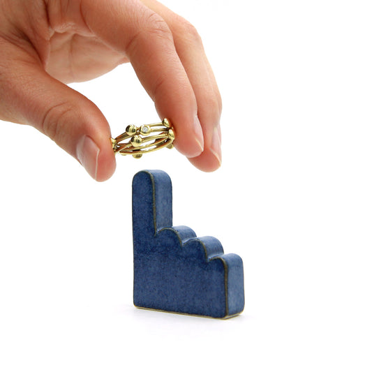 En leg med hænder, farver og attitude. DIGITS er små keramiske ringholdere formet som grafiske håndtegn, hver med sit eget udtryk. De spænder fra det rolige til det energiske og det hemmelige, og tilsammen danner de et lille farverigt selskab der både pynter og holder styr på dine ringe.
