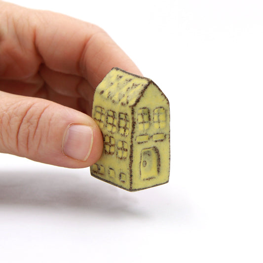 En charmerende kollektion af håndlavede keramikhuse, inspireret af de hyggelige huse på Olufsvej. Hvert hus er unikt, både i størrelse, konstruktion og farve, og er lavet af 100% genbrugsler.