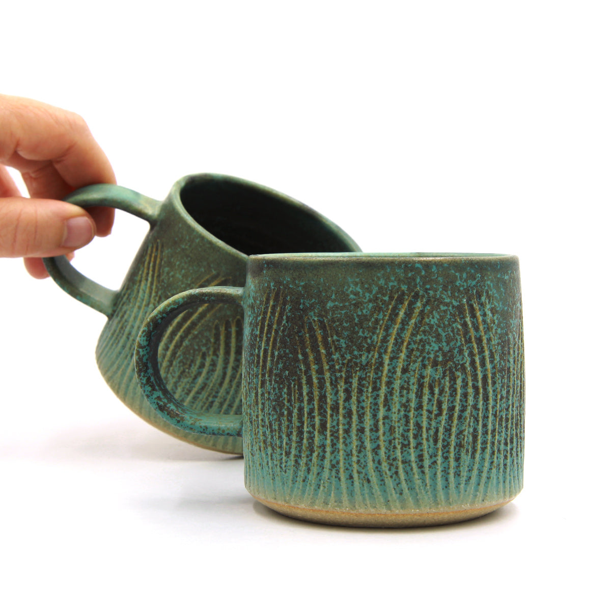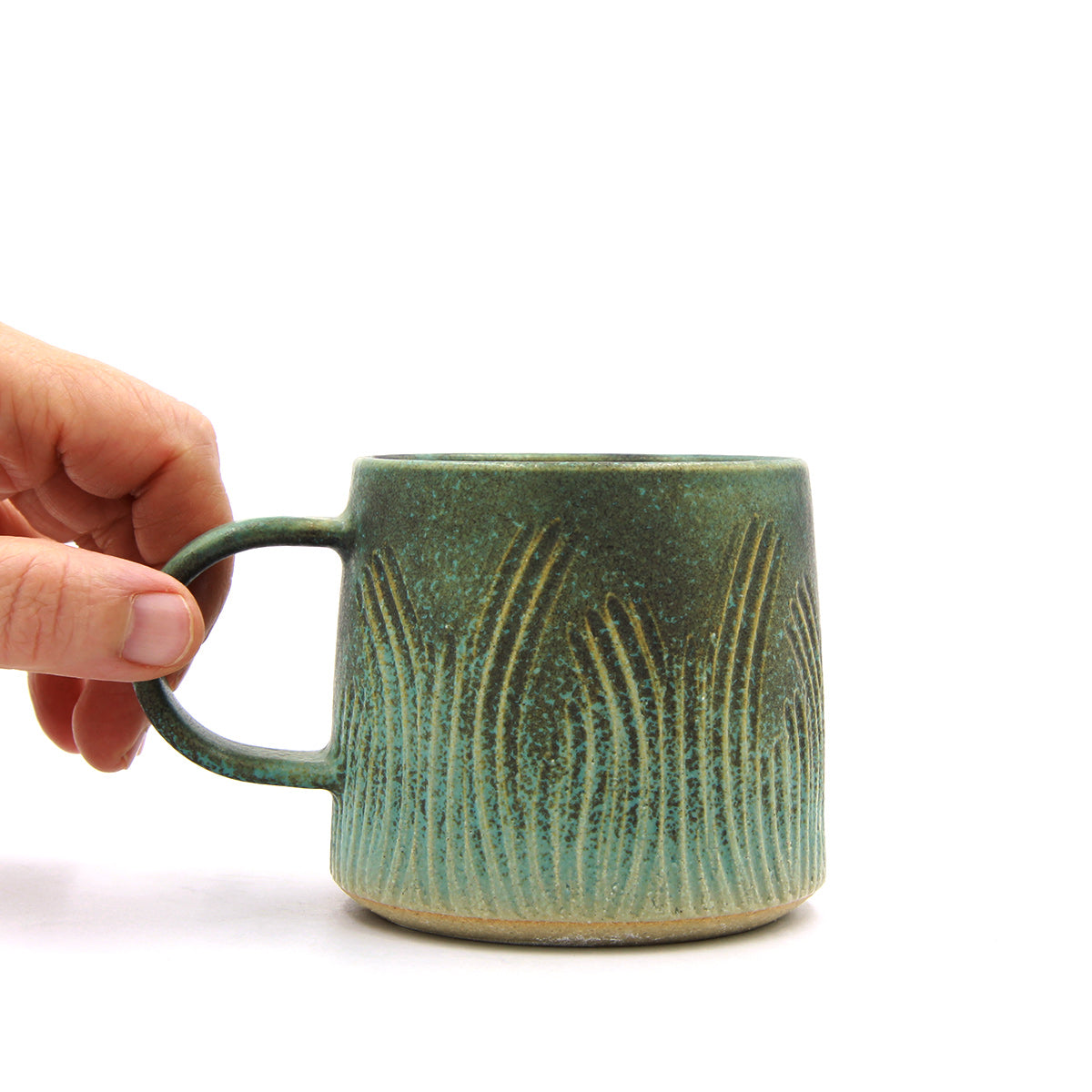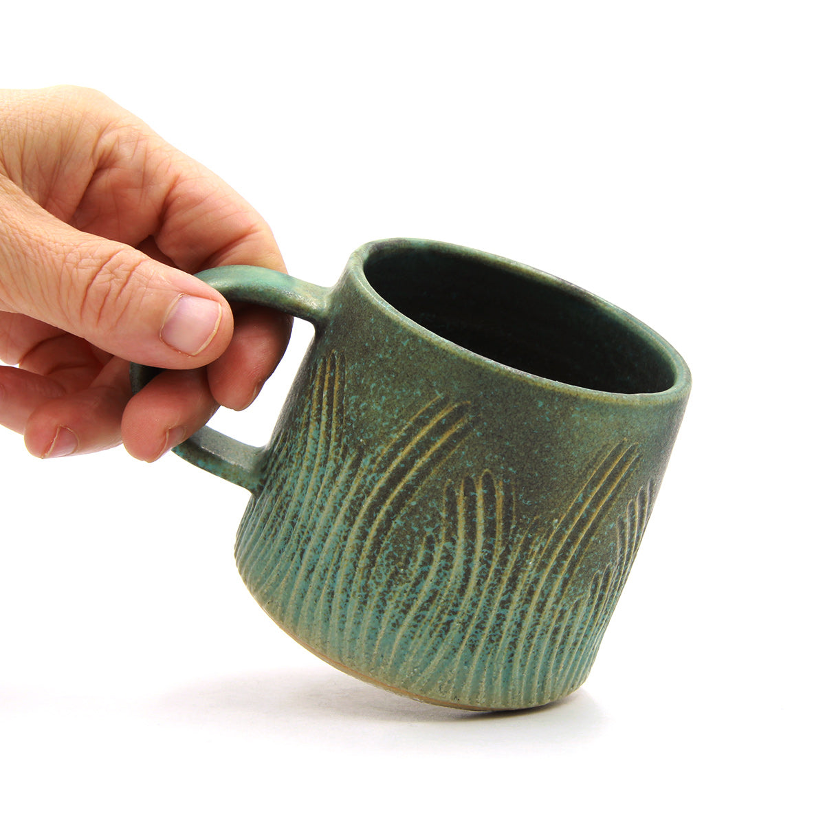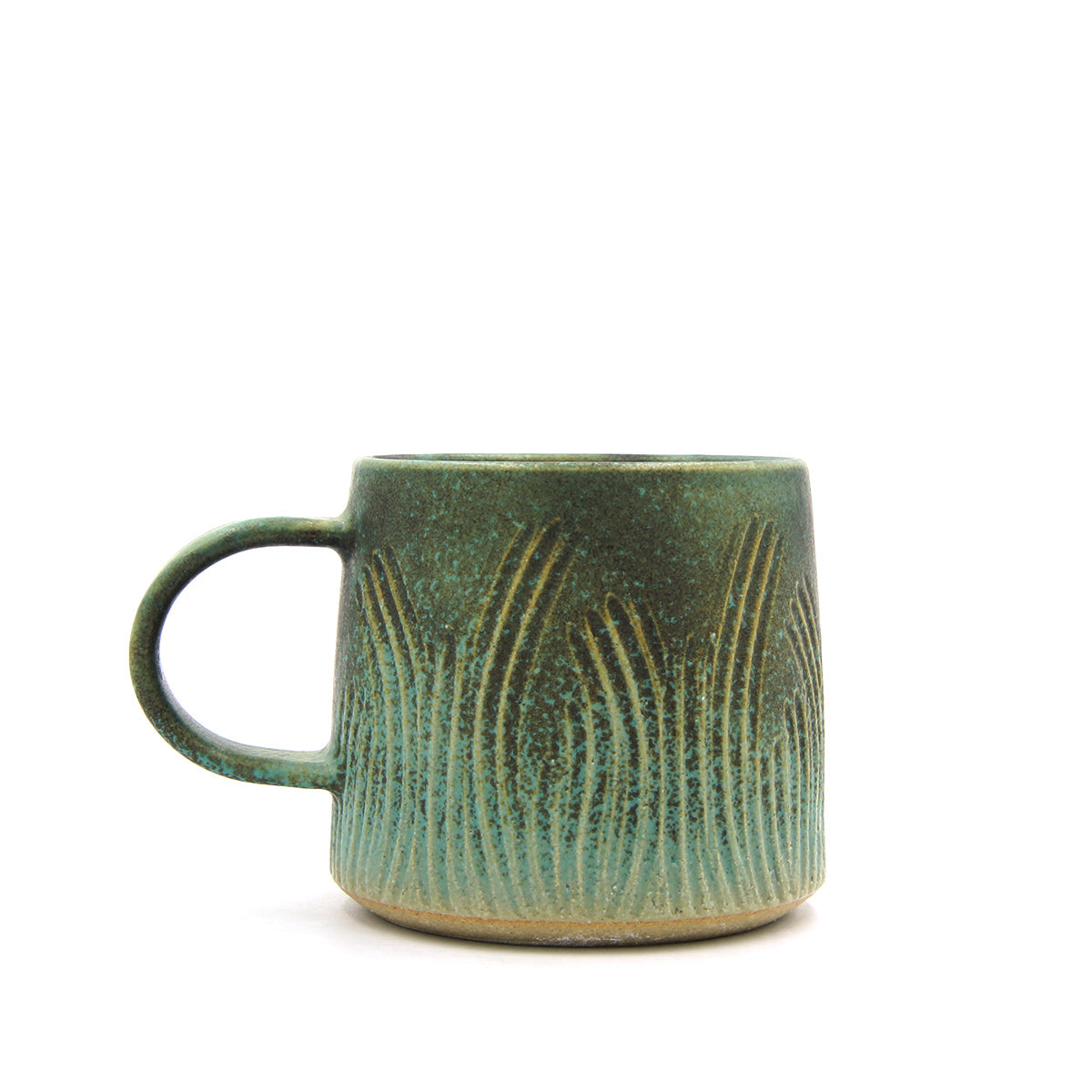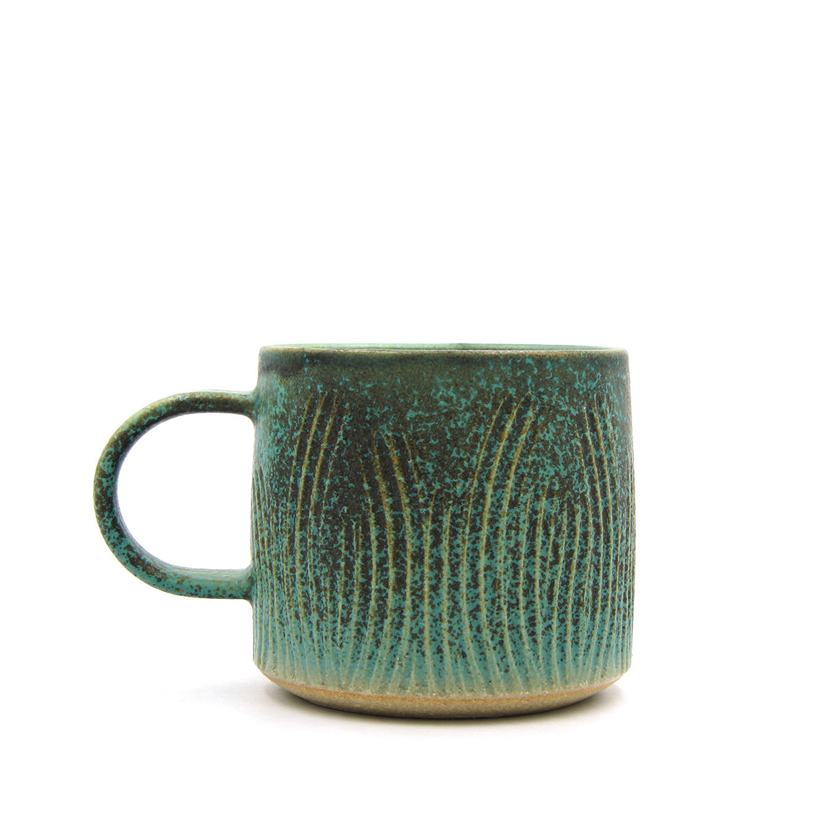 Hånddrejet CAVA kop med udskårne mønstre som både fanger øjet og ligger godt i hånden. Den brede afrundede hank gør koppen ekstra behagelig at holde om og er en daglig fornøjelse for enhver te eller kaffeelsker.