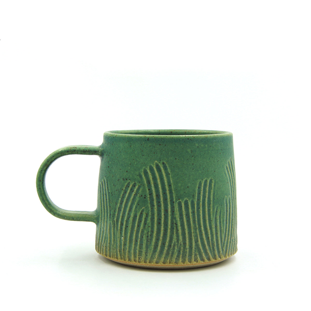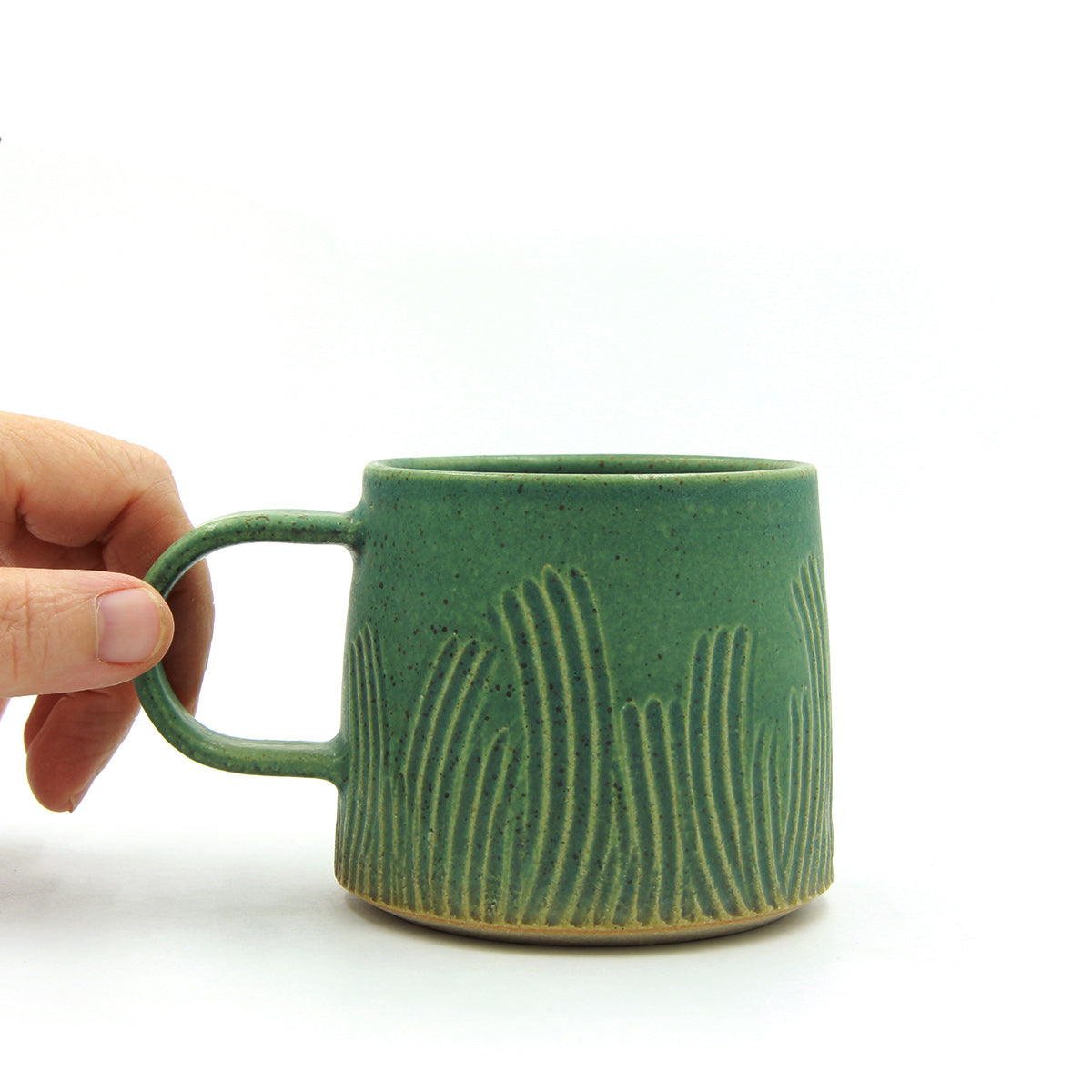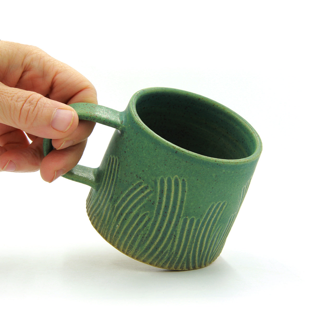 Hånddrejet CAVA kop med udskårne mønstre som både fanger øjet og ligger godt i hånden. Den brede afrundede hank gør koppen ekstra behagelig at holde om og er en daglig fornøjelse for enhver te eller kaffeelsker.