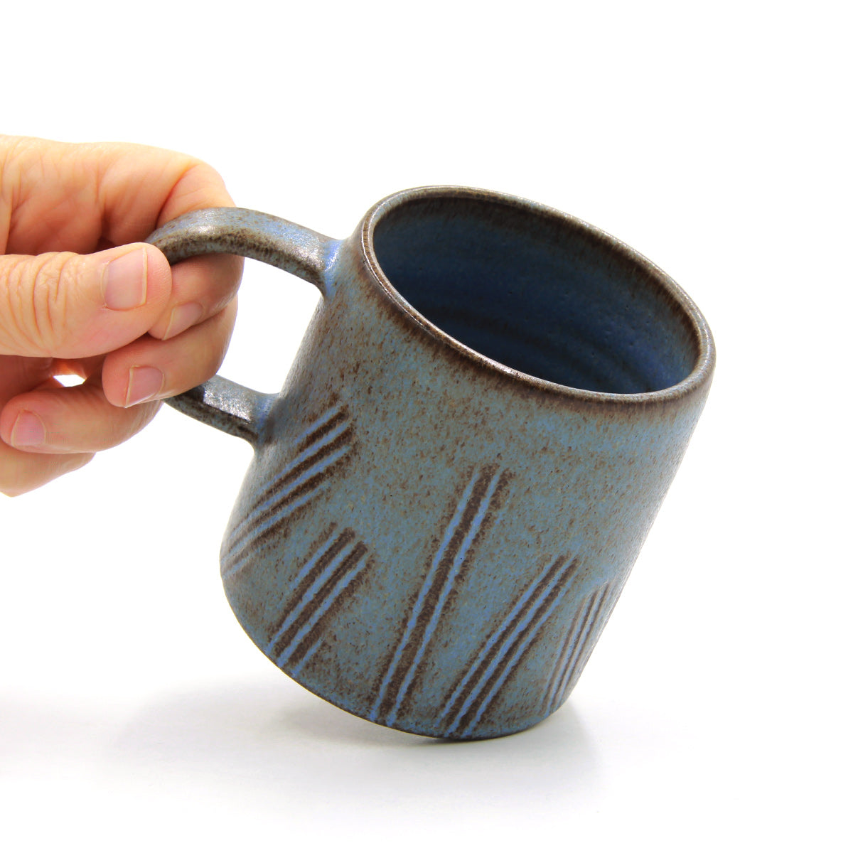 Hånddrejet CAVA kop med udskårne mønstre som både fanger øjet og ligger godt i hånden. Den brede afrundede hank gør koppen ekstra behagelig at holde om og er en daglig fornøjelse for enhver te eller kaffeelsker.
