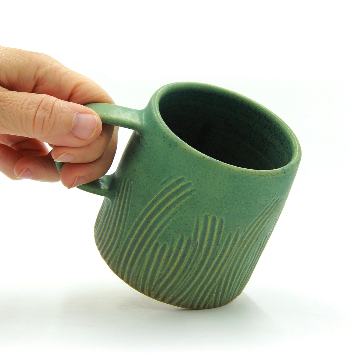 Hånddrejet CAVA kop med udskårne mønstre som både fanger øjet og ligger godt i hånden. Den brede afrundede hank gør koppen ekstra behagelig at holde om og er en daglig fornøjelse for enhver te eller kaffeelsker.