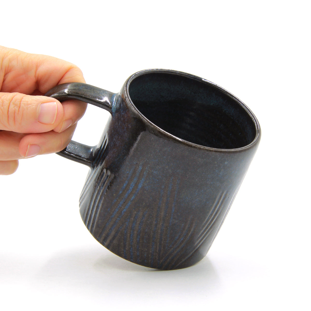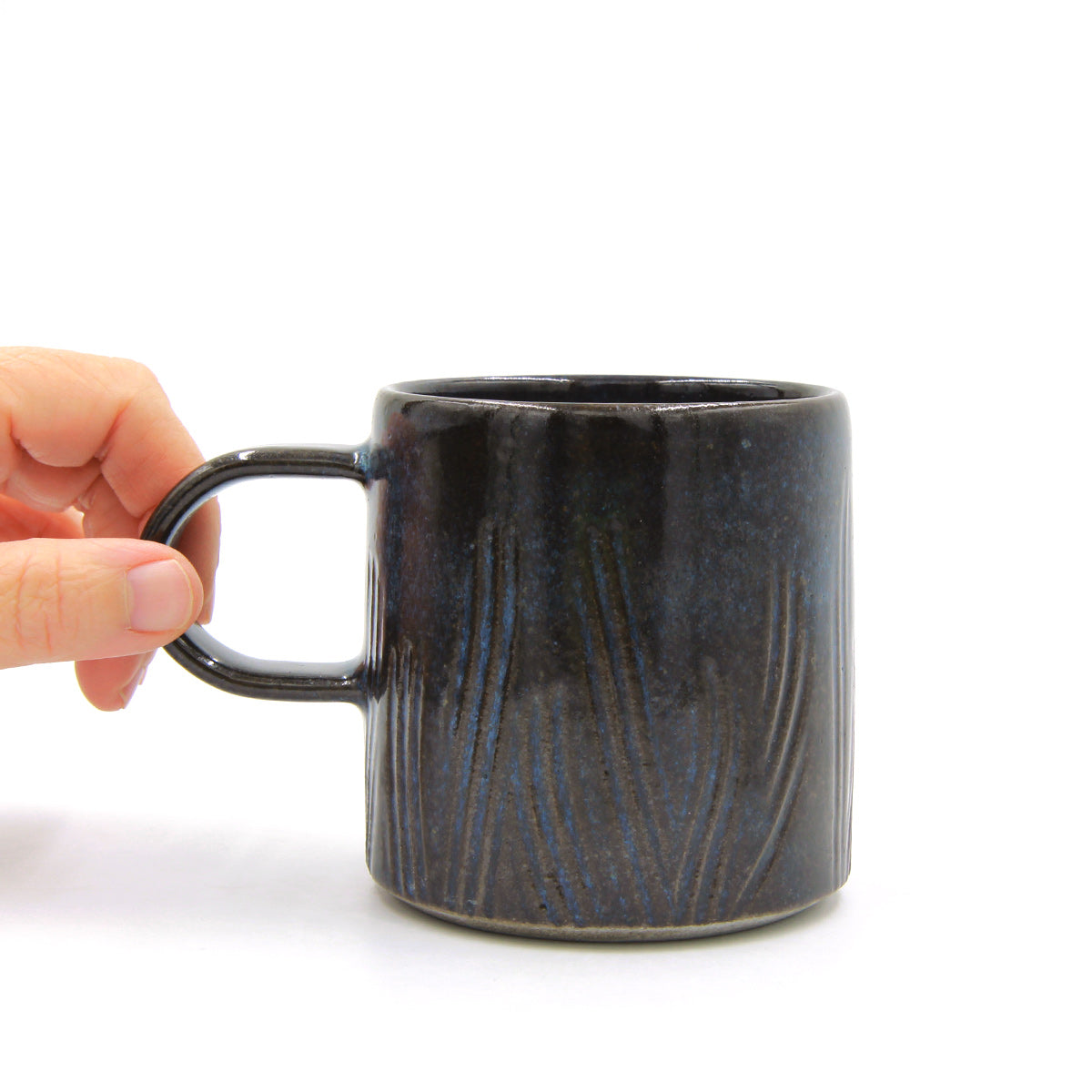 Hånddrejet CAVA kop med udskårne mønstre som både fanger øjet og ligger godt i hånden. Den brede afrundede hank gør koppen ekstra behagelig at holde om og er en daglig fornøjelse for enhver te eller kaffeelsker.
