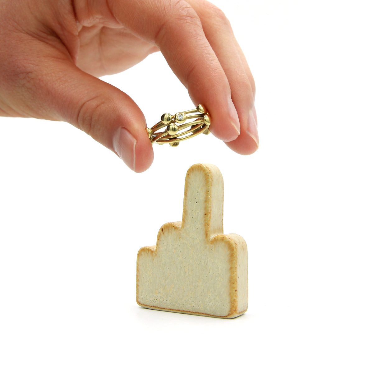 Den finger der satte ideen i gang. MIDDLE står alene og peger lige op, rolig og markant på samme tid. Formen er enkel og grafisk, og den giver dine ringe en klar plads at stå, samtidig med at den tilfører en lille smule underspillet humor. Let at placere i både badeværelse, køkken og ved natbordet.