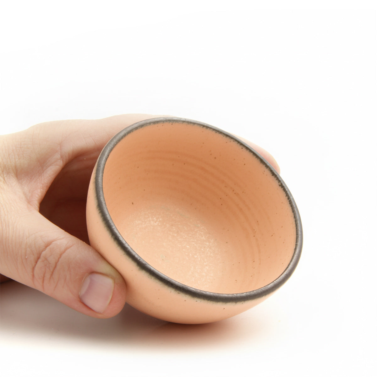 Lille hånddrejet stentøjsskål med en smuk mørk kant, der kendetegner serien.