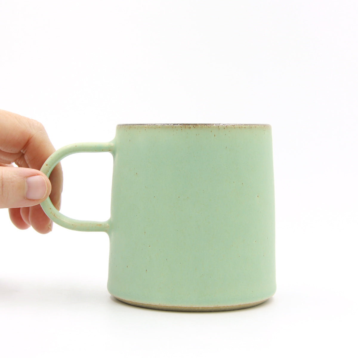 En rigtig stor og lækker kop med plads til hele 360 ml. Den har en stor, afrundet og flad hank, som er behagelig at holde. Perfekt til de store varme drikke som kaffe, te eller varm kakao.