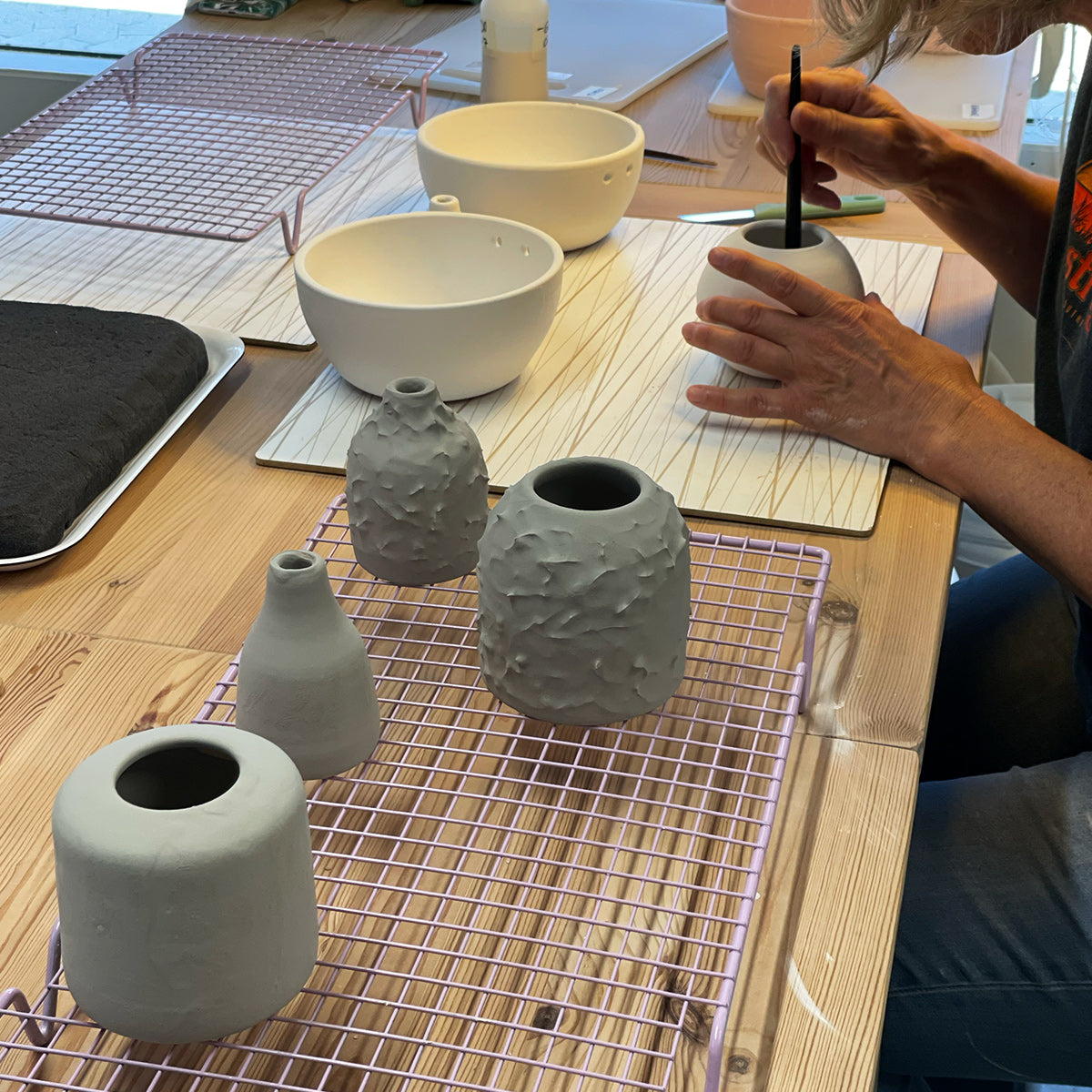 Har du forglødede emner fra Åbent Værksted? Så kan du tilmelde dig glaseringshold og få støtte i den afgørende sidste fase. Vi arbejder i rolige rammer med fokus på teknik, farvevalg og gode resultater – sammen med andre fra værkstedet.