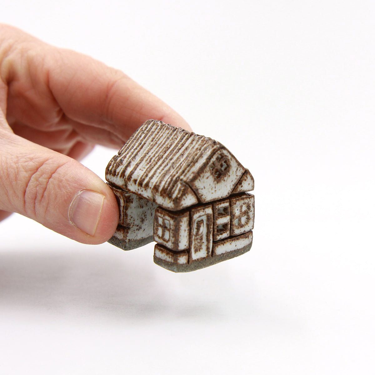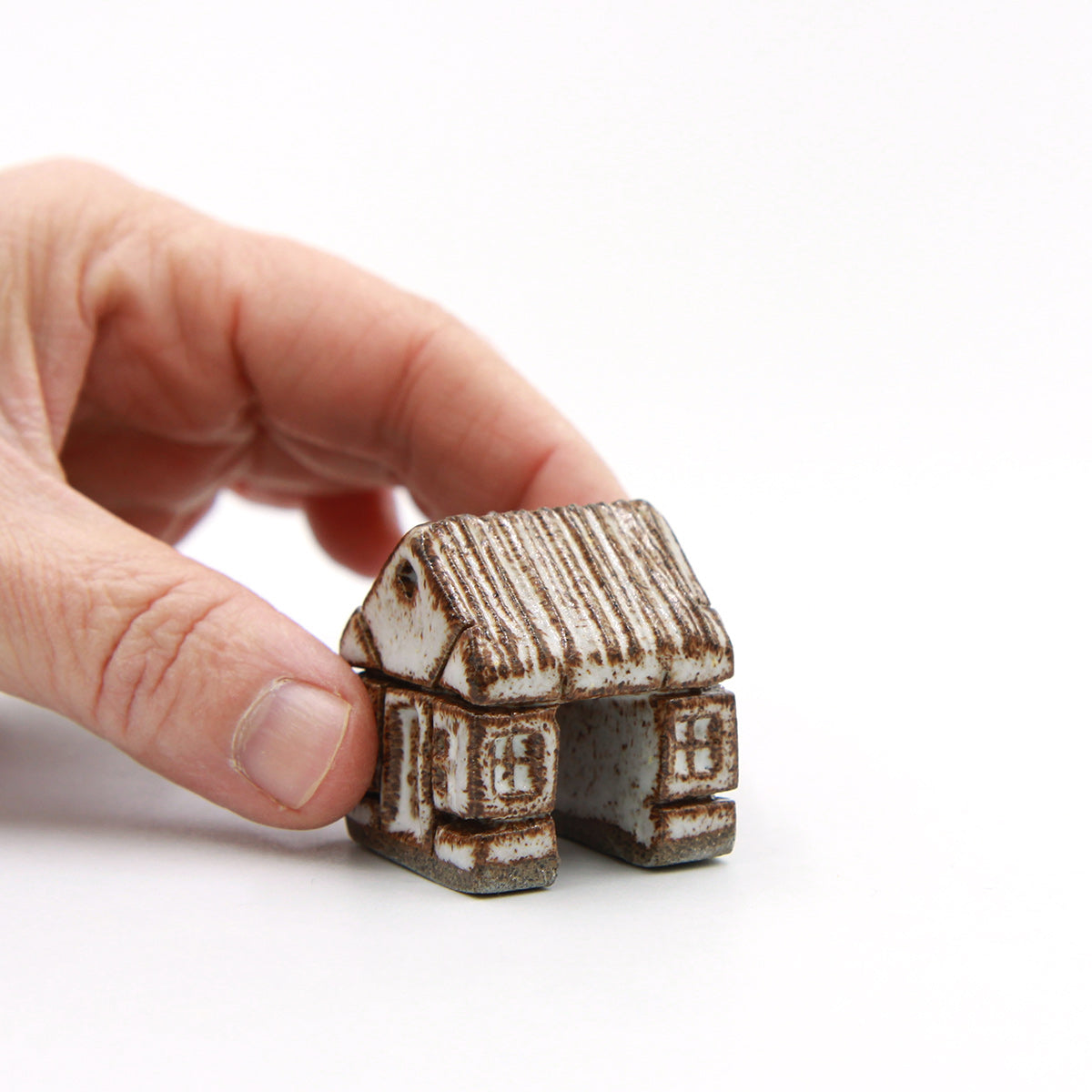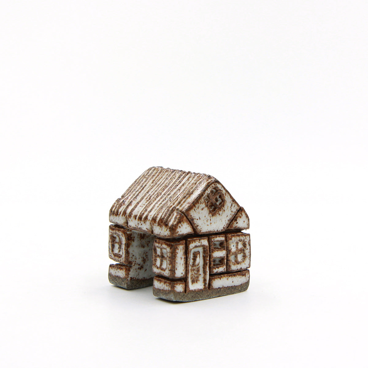 Et keramisk bindingsværkshus med stråtag og en bred indgang, inspireret af de gamle gårde, hvor hestevogne kunne køre igennem porten. Håndlavet i mørkt stentøj og glaseret i COCO. Den semi-blanke glasur fremhæver strukturen og detaljerne i bindingsværket. Porten fungerer som indgang i landsbyen og kan forbindes med huse på begge sider.