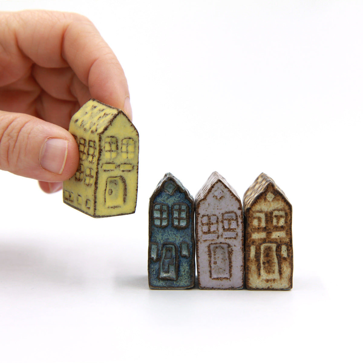 Olufshusene er skabt af 100% genbrugsler, nænsomt genanvendt fra min øvrige produktion. De brændes i de små mellemrum i ovnen, så ressourcerne udnyttes bedst muligt.